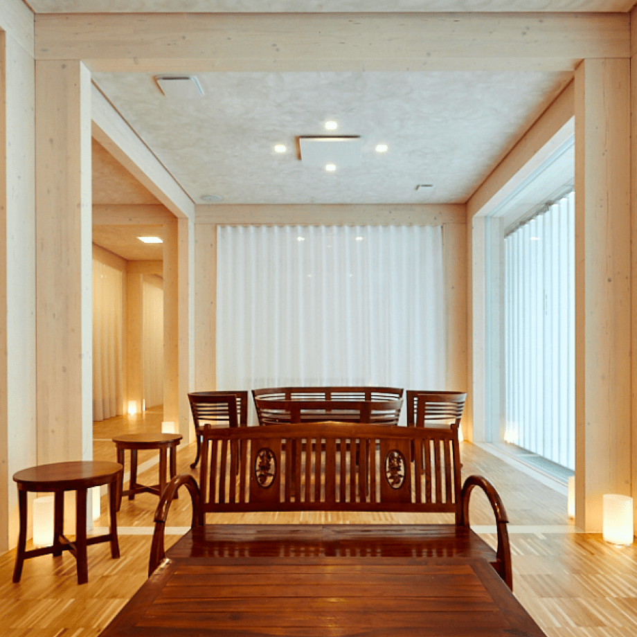 Im Anschluss an Ihre Therapien können Sie die ausgedehnten Relaxbereiche nutzen und sich mit Blick in die Natur entspannen. Im Ayurvedabereich des Pavillons finden Sie sechs spezielle Behandlungsräume mit Dampfkabinen zur noch intensiveren Aufnahme der therapeutischen Öle, die bei ayurvedischen Therapien verwendet werden. Diese Räume verfügen über authentische Ayurveda-Massagetische aus feinem Mahagonieholz. Sie wurden im indischen Kerala eigens für das Svata Katerina Resort erbaut.
